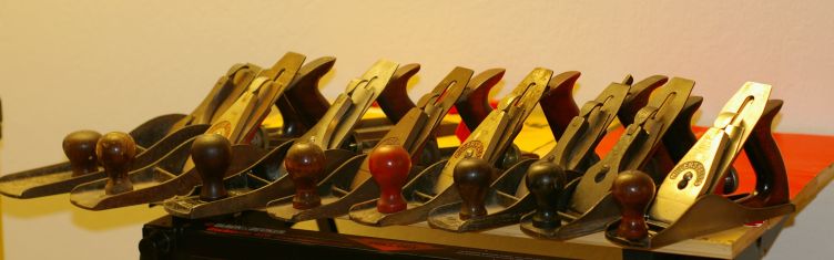 So dubido asked for a plane lineup. Here are all of my current bench planes (meaning that this excludes block planes, spokeshaves, and other weird stuff):