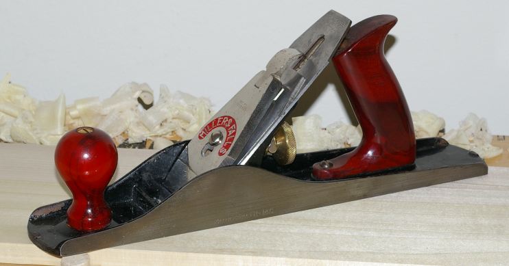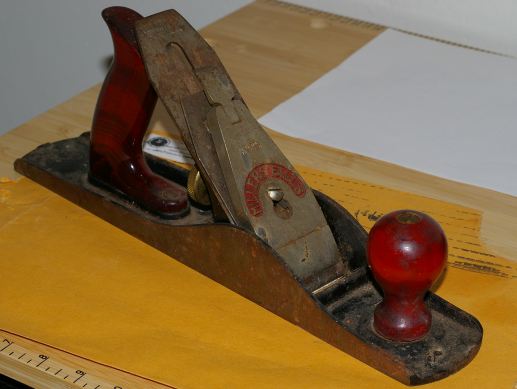 • Stanley #5C jack (14″), type 11 (1910-1918). Kinda beat up, with a cracked tote and stuff, but should eventually work fine.