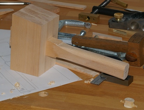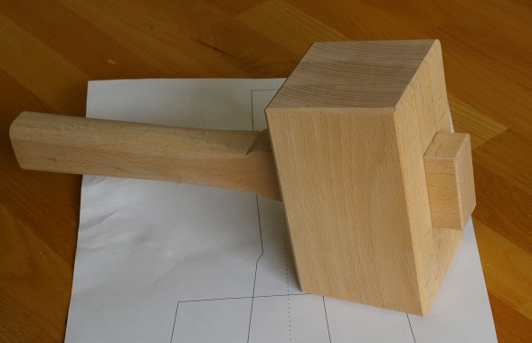 That left the finish. I went to the local hardware store and found nothing that I could stand. So I decided to use the same oil/varnish blend (“danish oil”) that I put on the workbench. This means that the mallet will show camouflage with the bench (because it’s made of the same wood), but this is okay.