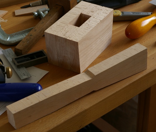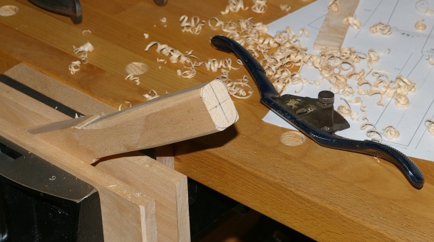 This morning, I took out the chamfering attachment to my low-angle block plane and set to work on the head. This was relatively easy work, and soon I had moved to the handle. I tried to work out some funny stuff that was going on in the handle, but wasn’t altogether successful. This is okay, because this (and one flaw on the head) does not affect the operational aspects of the tool.