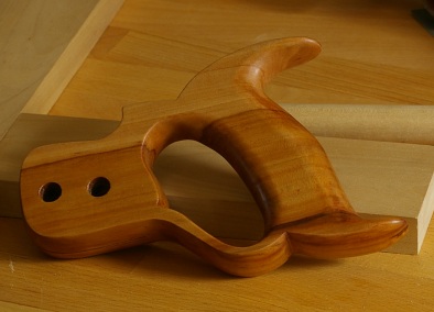 Since I was on a roll, I decided to finish the job today, too. First, I cut off the old handle, filed out the notch where the back fits into the handle, and drilled the holes: