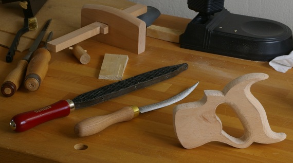 It uses a sliding dovetail joint to connect the two parts. The joint came out better than I expected but I don’t think I will use it for any future crepe spreaders. A wedged through mortise and tenon seems like it would work better.