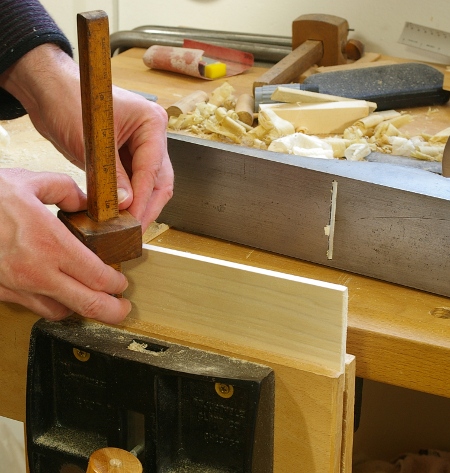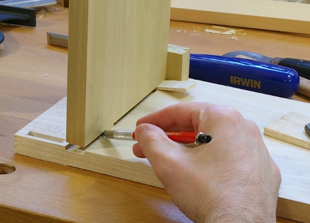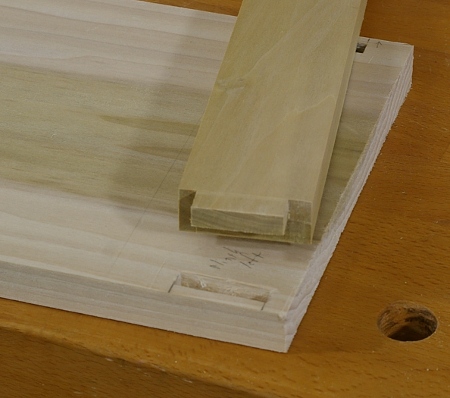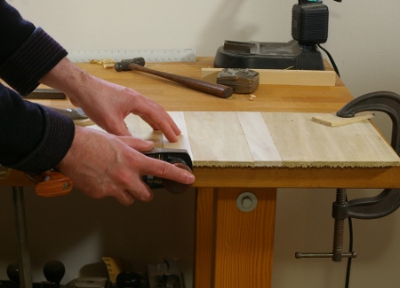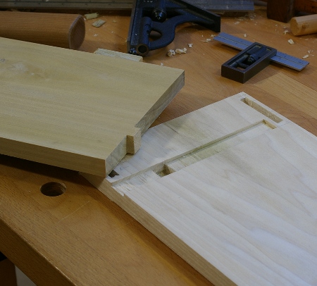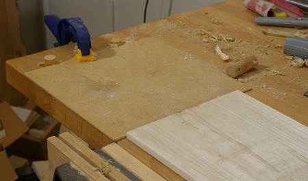 I’ll make the whole thing from a wide piece of beech that I got last year. The top has already made an appearance here, although back then, it wasn’t flat, uniform, and smooth, as it is now. This board is 8/4 stock, but unfortunately, part of one side of a 2.5-foot section isn’t usable. After looking at the requirements for this project, I determined that this section contains enough usable wood, though I have to be careful where I cut. The legs will be 1.5″ square, and the stretchers will be 1.5″ x 1″.