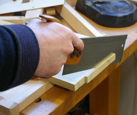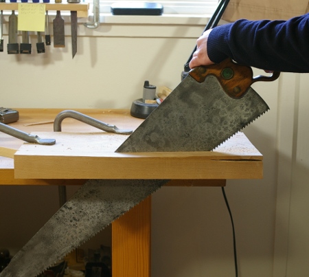 After ripping, I have to flatten one face, square an adjacent face, saw some more, and plane some more. So far, I have one leg and one stretcher four-square. If I didn’t have the big saw, I probably wouldn’t even be that far.