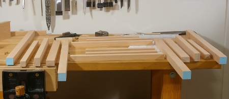 My speed improved significantly while making all of these joints. When I started the first one, it was taking me as long as 45 minutes to make one. Most of the time was spent paring off little bits of the tenons, most annoyingly, on the shoulders. By the time I did the drawer runner pieces, I was doing them in under 30 minutes. (Yeah, the pros do them six times faster, but I’m not a pro.) What’s more important to me than speed is accuracy, and that improved tremendously, too. All of my tenons now seem to fit right off the saw. The only paring I need to do is still that little bit on the shoulders, but it’s going faster now. I’m using the mystery chisel for that because a 1.5″ chisel has a lot of registration area. It really seems to be holding its edge well.