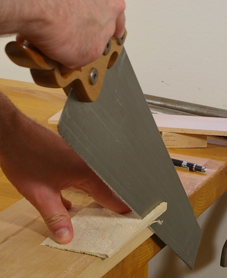In some earlier posts, I’d mentioned that I’d been having a little trouble ripping panels and drawer bottoms (I use my Pax saw for crosscutting them). Although this is not a frequent operation for me, every time I did it, it was annoying. And I’m happy to say that it works wonderfully for this type of thing, as shown in the test cut below: