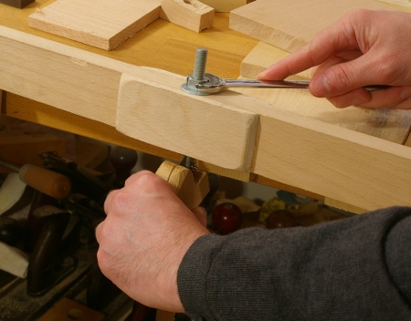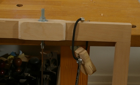 The stock instructions from Lee Valley show mounting the vise jaw as an extension to a bench apron. Of course, I don’t have one of those, nor is my benchtop very thick, and furthermore, my benchtop does not have much overhang.