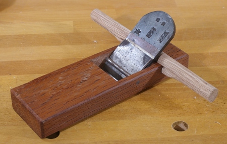 PS: In case you’re wondering what the rectangular hole underneath the blade is, for, the plane comes with a removable handle. When fit, it looks like this: