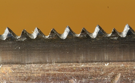 Independently, I decided to finally get a macro lens, and like the nerd that I am, I thought I would point it at the saw teeth to see what they look like (since these are too small for me to really want to strain my eyes on):