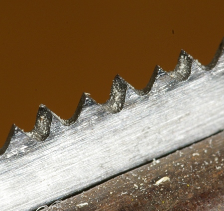Remember that this is a 14TPI saw, so the area shown here is a little more than a half-inch wide. The image here translates to roughly 8x magnification on a 100dpi display. Here’s a view from an angle: