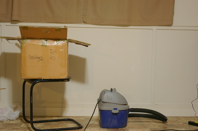 There’s been very little time to get the shop in order since the move. Between the day job, getting the rest of the house looking less of a total wreck, and some mandatory snowboarding last weekend, the only thing I’d managed was to string up the lights. At this point, I have to thank the designers of the compact fluorescent lamp (CFL). I was able to string up five full-spectrum bulbs, each with the brightness equivalent of a 100-watt incandescent bulb, combining for just over 100 watts of consumption and very little heat. The task would have been horrible with anything else because I don’t have the space for a big fixture, and the power situation in the shop is not terribly ideal, anyway.