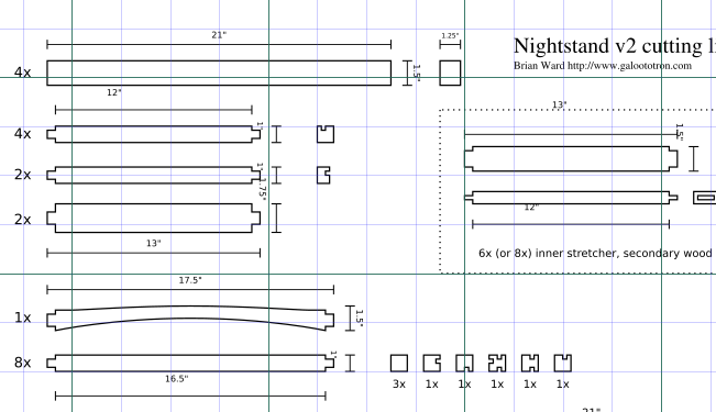 My next project will have the same subject as my immediately previous serious furniture project: a pair of matching nightstands. The one I made last year was for the guest bedroom, which is great for the guests, but now we’d like to rid ourselves of some rather horrible (but cheap) graduate school-era stuff in our own master bedroom.