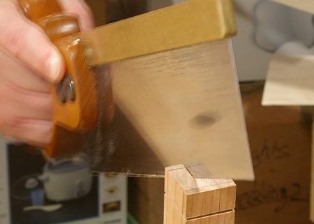 Now, saw your tenon (the following photo is gratuitous, but just in case anyone’s forgotten how to saw a tenon cheek):
