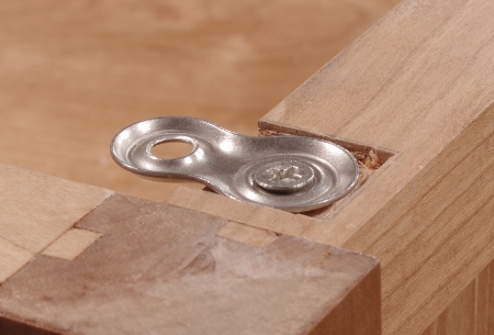 The top is attached to the base with flimsy L-bracket-style hardware. Strangely enough, it works. The top is so heavy that even with the most measly of lag screws holding things together, it never moves. It doesn’t vibrate. This still surprises me, given what the benchtop has to endure. Were I doing this over again, I’d probably do mortises just to keep it aligned (it’s a pain to put the top back on when you move from place to place), but I wouldn’t do Schwarz-style through mortises. They just don’t need to be that deep. However, it should be secured in some way just to keep the top from jumping around.