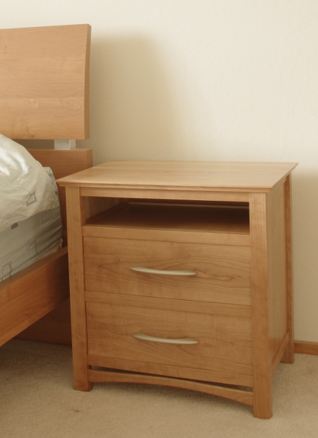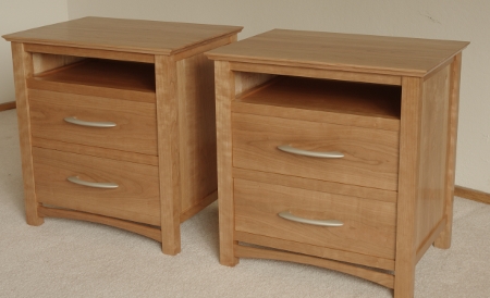 So is it a step back from a year and a half ago? It would be if form were everything. But these were designed primarily for function, with the form fitting into a context–they flank a somewhat cheap bed that has no particularly graceful features of its own. They are a tad fancier than the bed itself. Eventually, I will build a replacement for the bed, and at that point, I can make the bed do what the nightstands cannot do on their own.