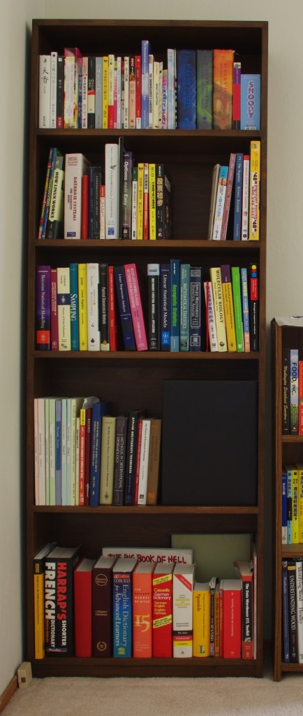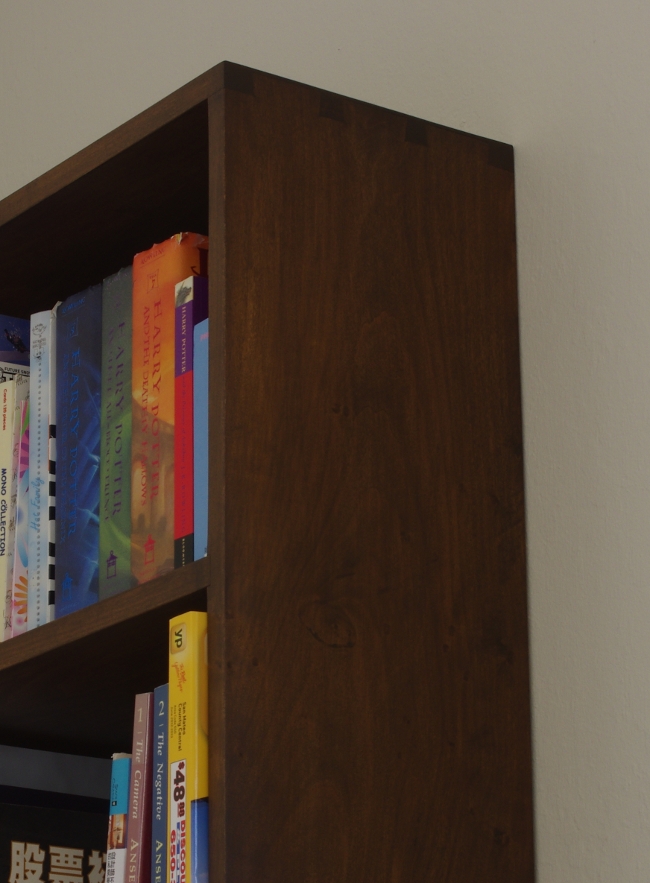 I didn’t really bother to take decent photos of the finished bookshelf. It’s just not a showcase piece; it’s there to hold books so that we don’t have to put them into boxes or just leave them on the floor all over the place. Somehow, I felt that this is a piece that should blend into the background; you shouldn’t notice it’s there most of the time.