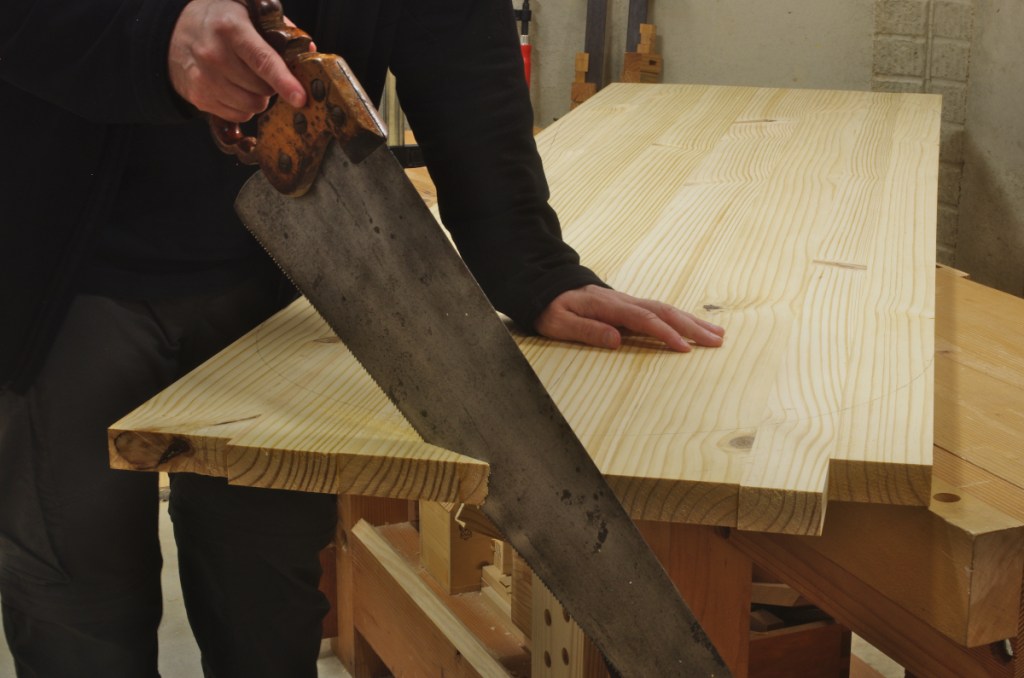 I removed as much as I could with a saw, working my way around the ends and trying to get as close as possible to the line. The cuts on the long grain were more challenging, so I used a drawknife to get rid of most of that material: