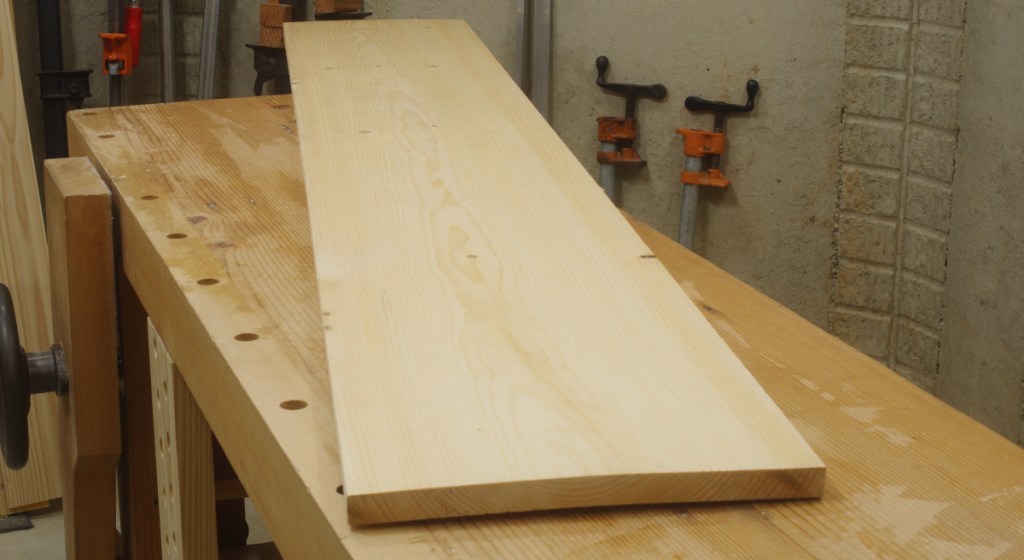 The lid frame and panel presented another typical situation: determining which boards to use for the frame and panel. You normally want frames to be rift- or quartersawn because they’re more stable, and of course, those cuts are difficult to find if you’re just looking superficially (which is close to what I was doing when I bought most of the white pine that I have on hand). Fortunately, I had this one: