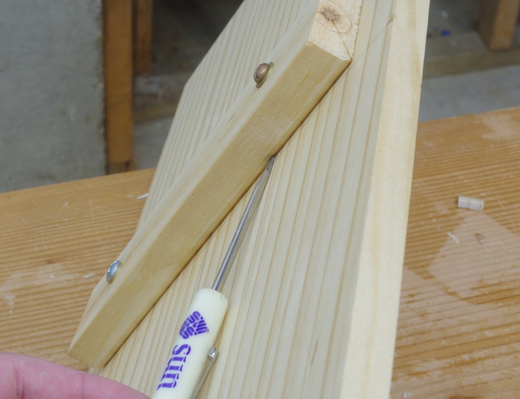 The “eagle-eyed” may have noticed the small chamfer that I’d planed to the bench stop’s interior face: