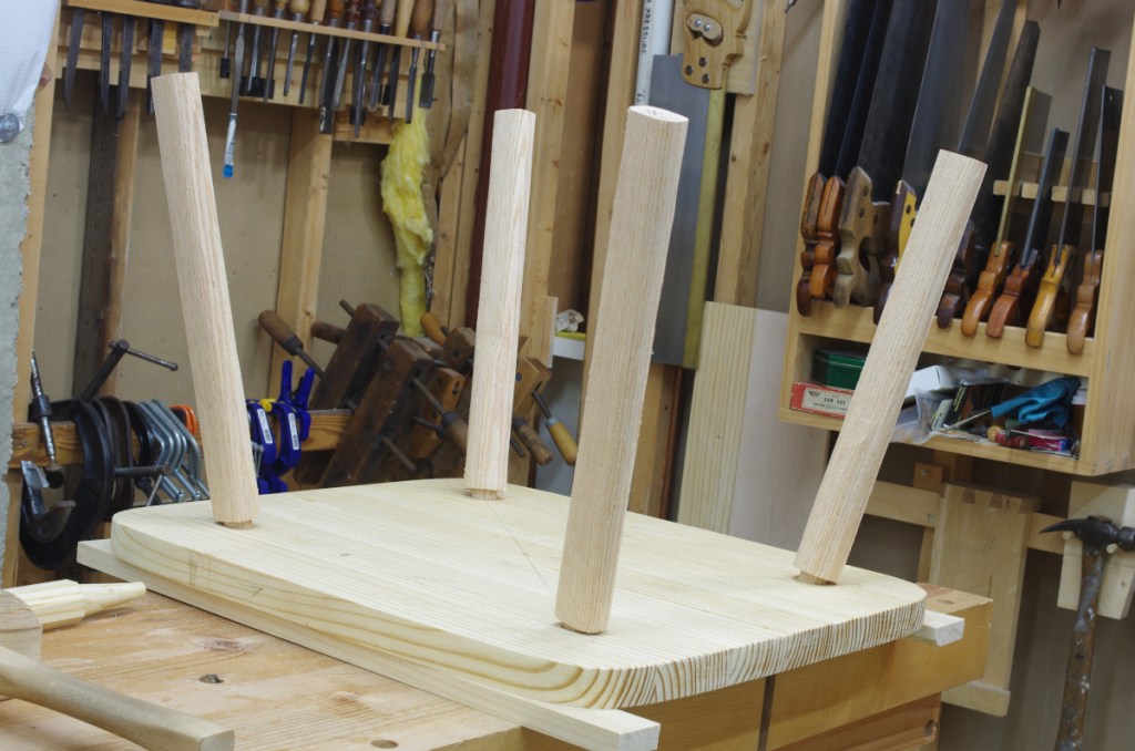So the legs are shaped and fitted, and the top is also to rough shape: