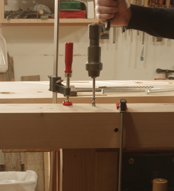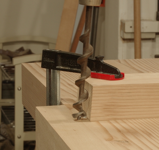I was surprised at how quickly the Jennings bit flew through the endgrain. I recall having a lot of trouble with endgrain when I did the first bench, but I suppose that having a halfway decent complement of bits and knowing how to sharpen them goes a long way.